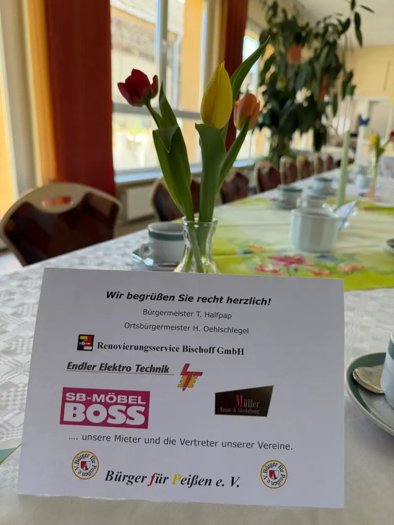 laden wir Sie recht herzlich für ein paargemütlichen Stunden in netter Gesellschaft in das Gemeindezentrum (Gewerbehof 1) in Peißen ein.Plaudern Sie mit uns über die kleinen Missgeschicke des Alltags und die großen Heldengeschichten des Lebens. Wenn Sie Lust auf gute Gespräche, herzhaftes Lachen und ein Stück Kuchen zu viel haben, dann sind Sie bei uns goldrichtig – herzlich willkommen!Falls bis dahin unsere Baustelle vorzeigbar ist, laden wir Sie herzlich ein, unsere frisch renovierten Räume zu besichtigen. Lassen Sie sich überraschen.Wir freuen uns wie immer über Ihre Anmeldung.Bitte bis zum 13.04.2026an Gabriela Rosche: Tel. 0177/7189 569.